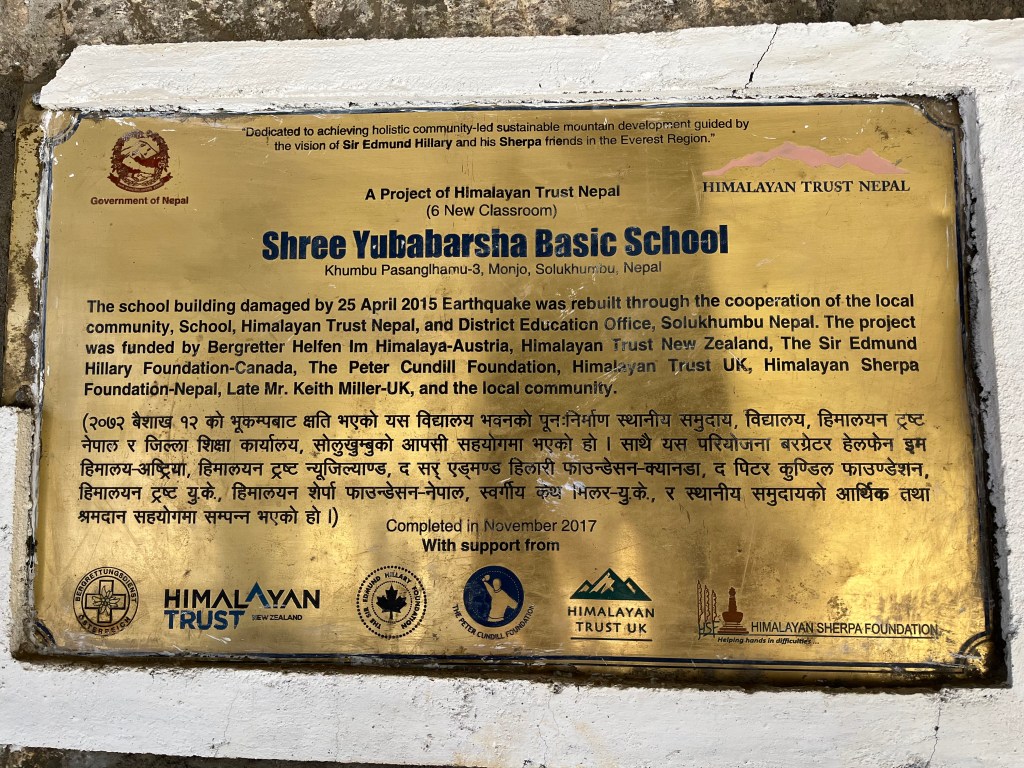 Monjo stands like an old town untouched by modern civilization and technology. We visited ‘Shree Yubabarsha’ secondary school (recently rebuilt after the earthquake in 2015) and a monastery next to it. Like many other projects and schools throughout the Khumbu region, this school project received funding and support from organizations and trust foundations, such as the Himalayan Trust.