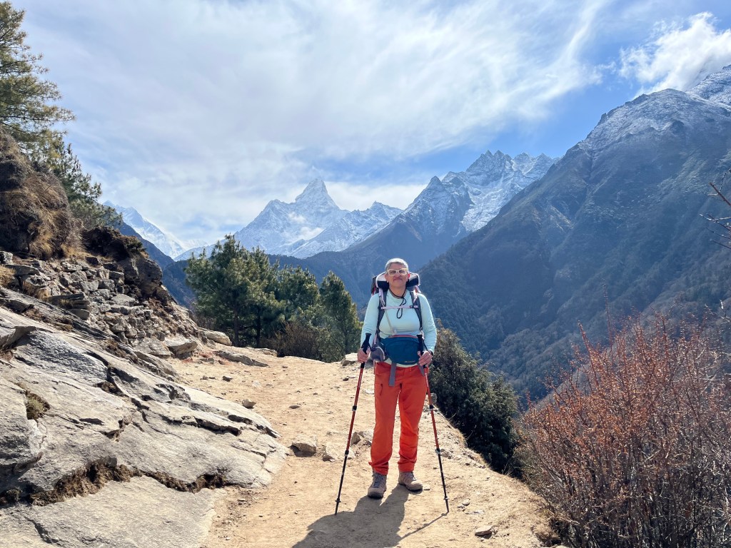 On our way to Tengboche monastery, we passed a picturesque village and there were beautiful rhododendrons blooming on large trees as opposed to the smaller shrubs that I was used to seeing in the New England area (North East of the U.S). We even spotted a Danphe, also called the Himalayan Monal. It’s a type of pheasant male bird with vibrant dazzling plumage to attract mating partners and lives at elevations over 16,000ft.