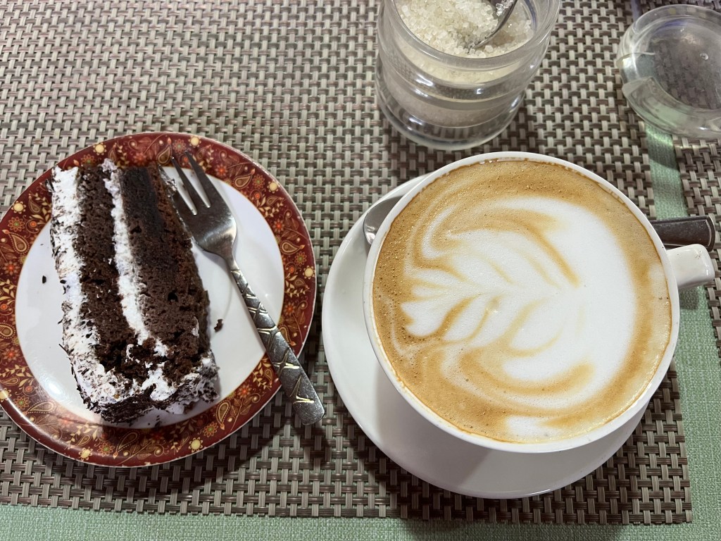 We got back down around lunchtime and spent the afternoon at the cafe at Countryside hotel in Dingboche, eating a variety of cakes, enjoying some good latte made from an Lavazza espresso machine (which is a real treasure to find in the mountain villages) and playing cards.
