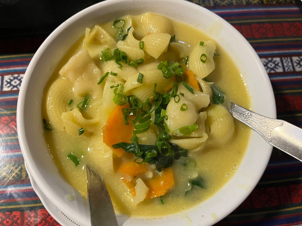 My sore throat by now turned into a really painful laryngitis, my Delhi belly troubles became more serious and I began having a mild fever. I suddenly turned weak and fragile within a couple of hours after reaching Gokyo. I started my course of Z-pack after some hearty Sherpa stew. Sherpa stew is a hearty hot vegetable noodle stew with lots of garlic, a perfect boost for the immune system and a real comfort food for my condition. It is a must try for any Himalayan trip.